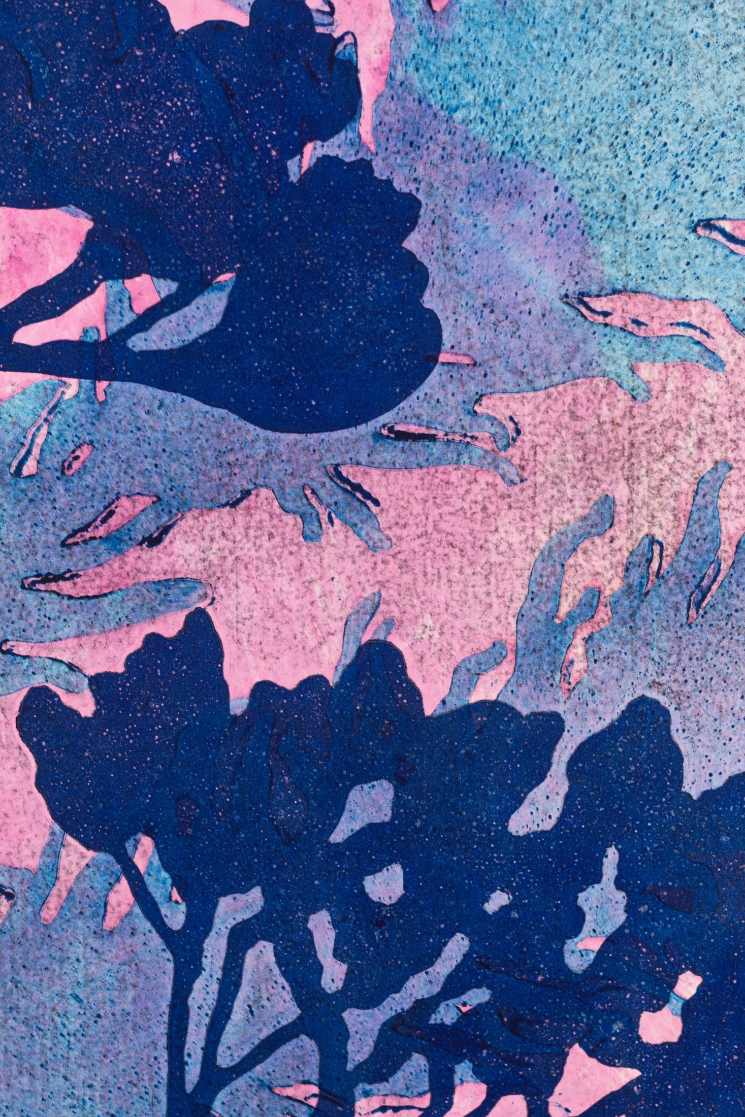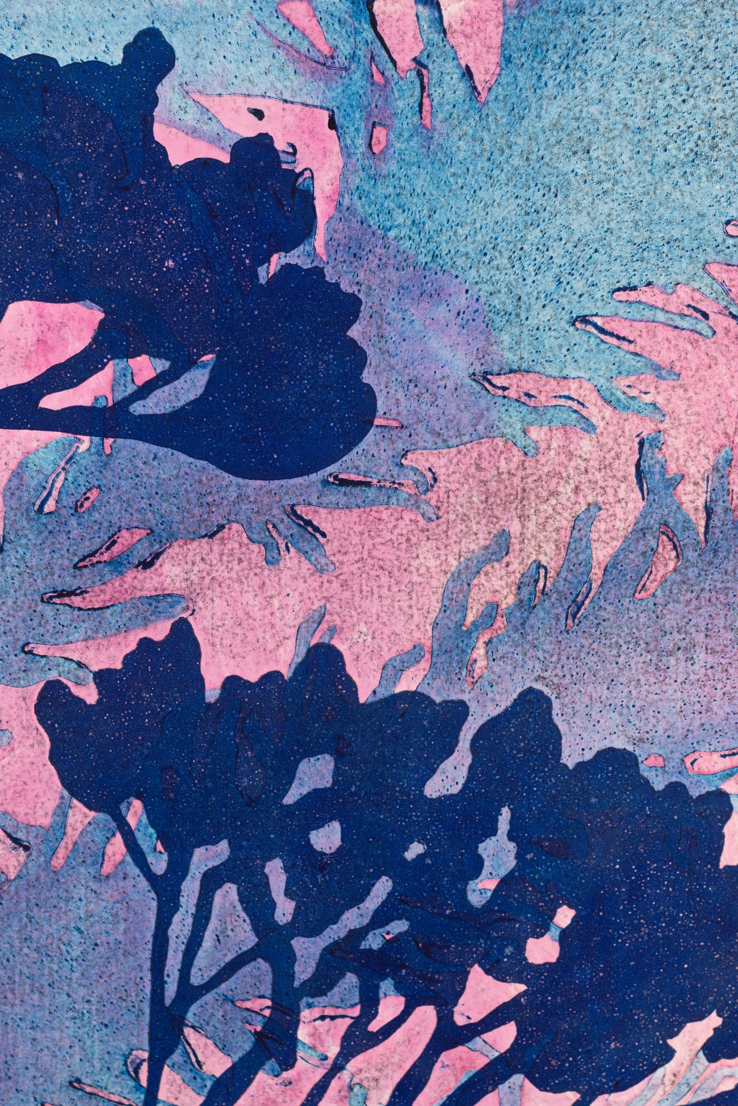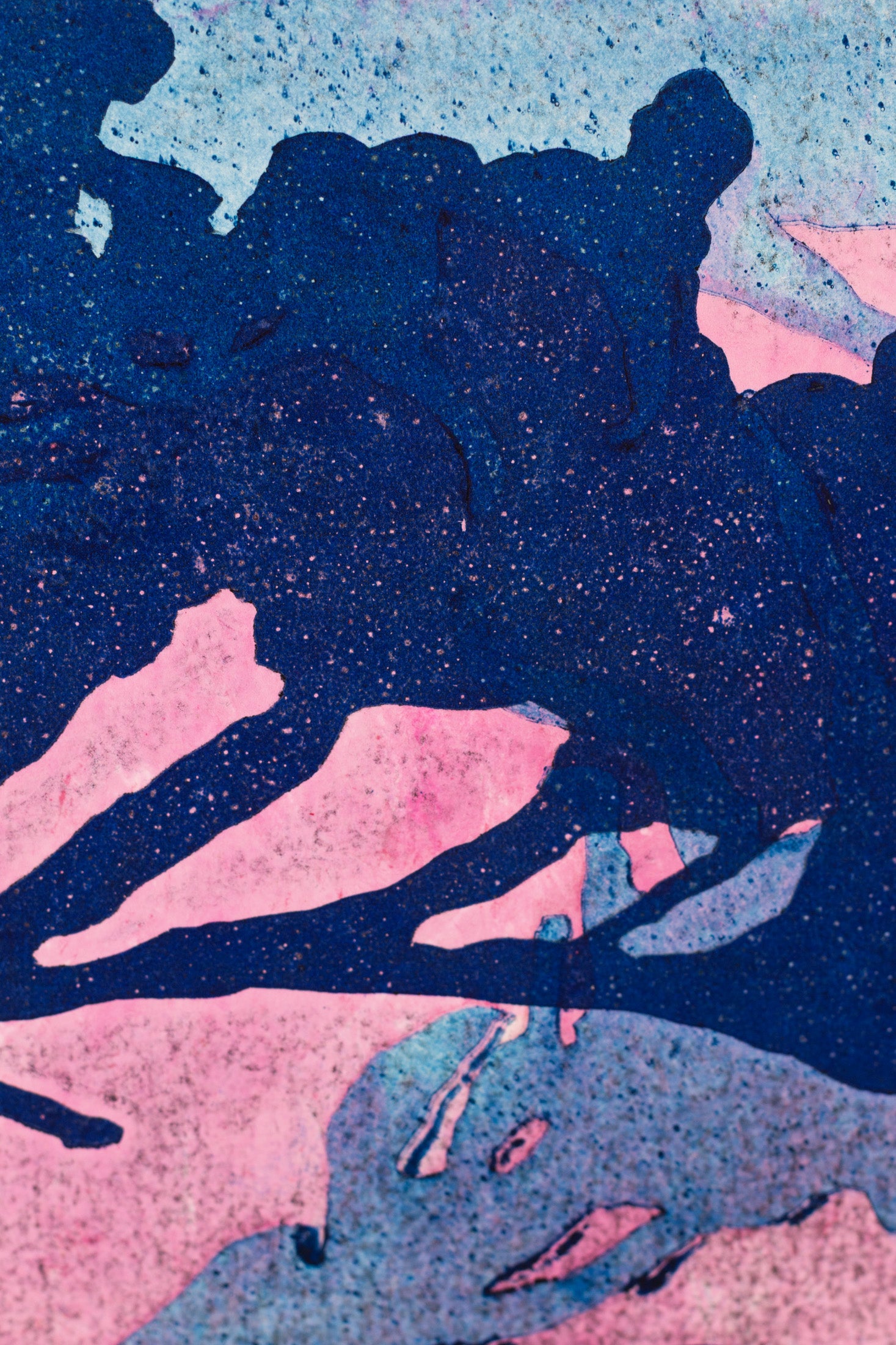 Linocut printed with rich oil-based ink from three plates, hand-rolled and hand-printed. Inspired by a summer of the century, far away from light smog and the hustle and bustle of the big city